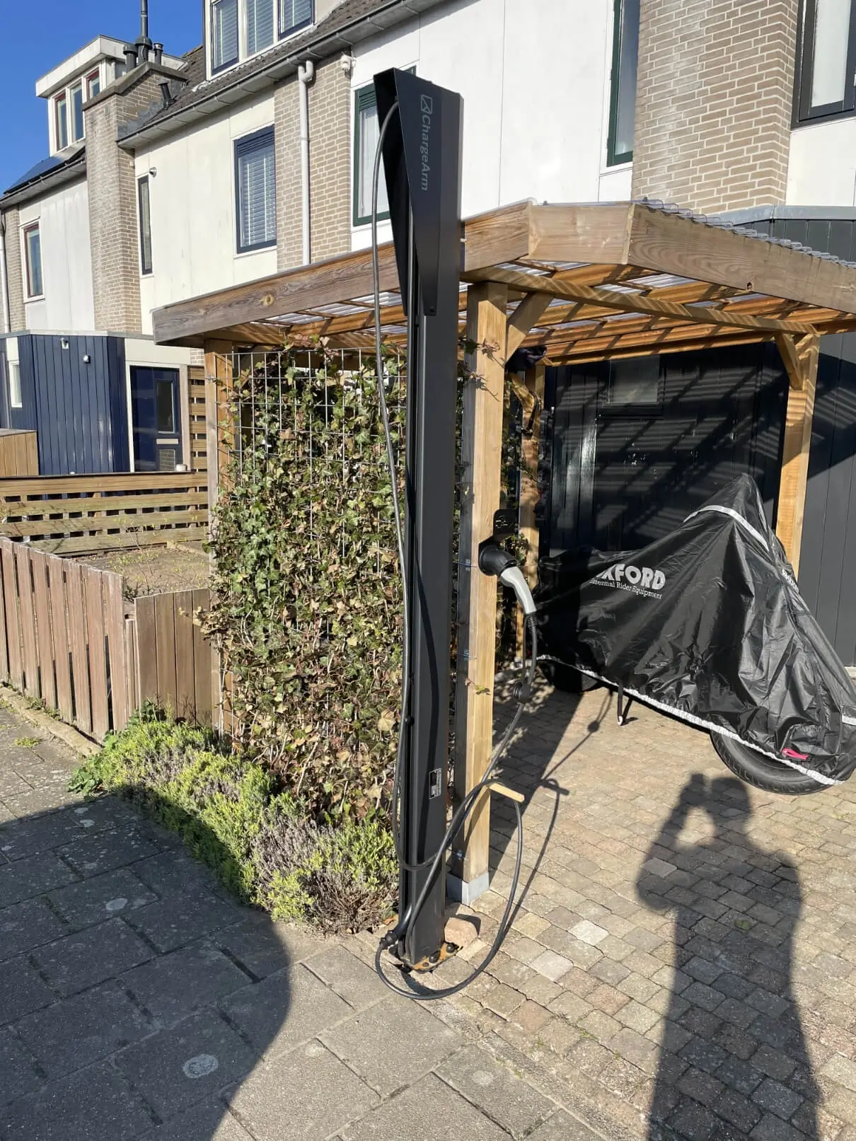 De ChargeArm is een innovatieve oplossing om op een veilige manier uw laadkabel over de stoep heen te leiden. De ChargeArm is beschikbaar in twee uitvoeringen, namelijk een wandmodel en het vrijstaande model. Op deze manier kunt u de vrijstaande ChargeArm in uw tuin op de gewenste plek (laten) plaatsen, of kan het wandmodel aan de gevel worden geplaatst indien er bijvoorbeeld geen voortuin is. De ChargeArm kan een afstand van 2,5 meter overbruggen.