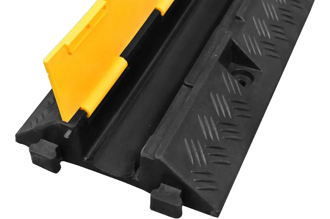 Met een kabeldrempel beperkt u het struikelgevaar wanneer u uw laadkabel over de stoep legt. Daarmee blijft uw laadkabel onbeschadigd en dus goed beschermd. Daarnaast houdt u het pad zo ook toegankelijk voor rolstoelgebruikers. In de drempel is ruimte voor maximaal twee kabels, dankzij de twee uitsparingen. Deze kabeldrempels kunnen ook nog eenvoudig aan elkaar bevestigd worden. Daarnaast bevatten de drempels tevens bevestigingsgaten voor het monteren aan de grond. Eén drempel heeft een lengte van 98 cm en een breedte van 24,5 cm. De uitsparingen hebben elk een breedte van 3,2 cm. Het maximale gewicht dat over de drempels kan is 10 Ton, bij een maximale stapsnelheid van 10 kilometer per uur.