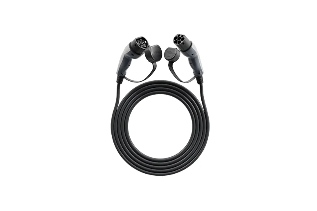 Hoogwaardige PUR-laadkabel met twee maal type 2 stekker. Inclusief afdekkap aan beide stekkerzijdes. De laadkabel heeft een laadvermogen van 11 kW en is 15 meter lang.