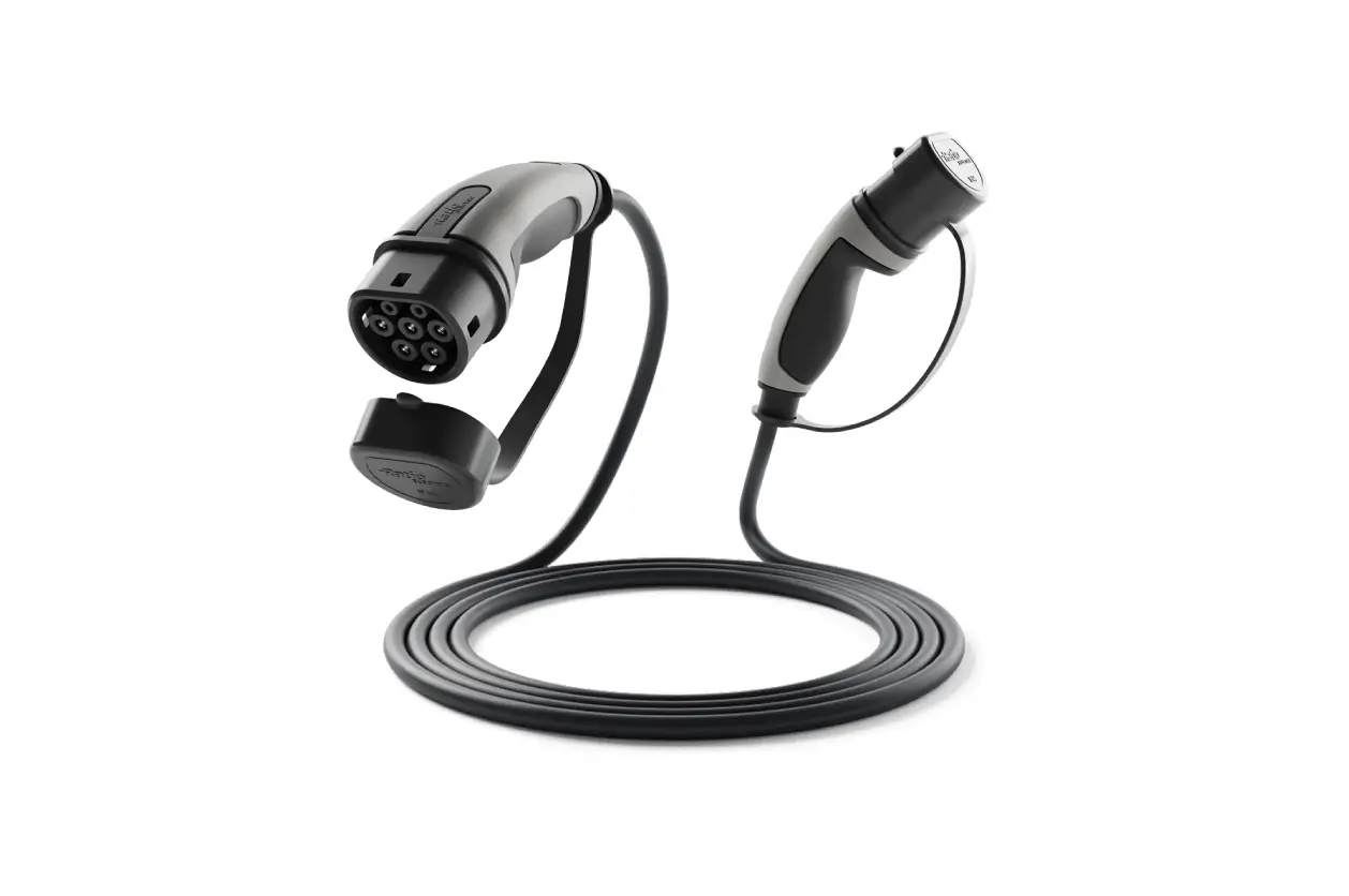 Hoogwaardige PUR-laadkabel met twee maal type 2 stekker. Inclusief afdekkap aan beide stekkerzijdes. De laadkabel heeft een laadvermogen van 22 kW en is 7,5 meter lang.
